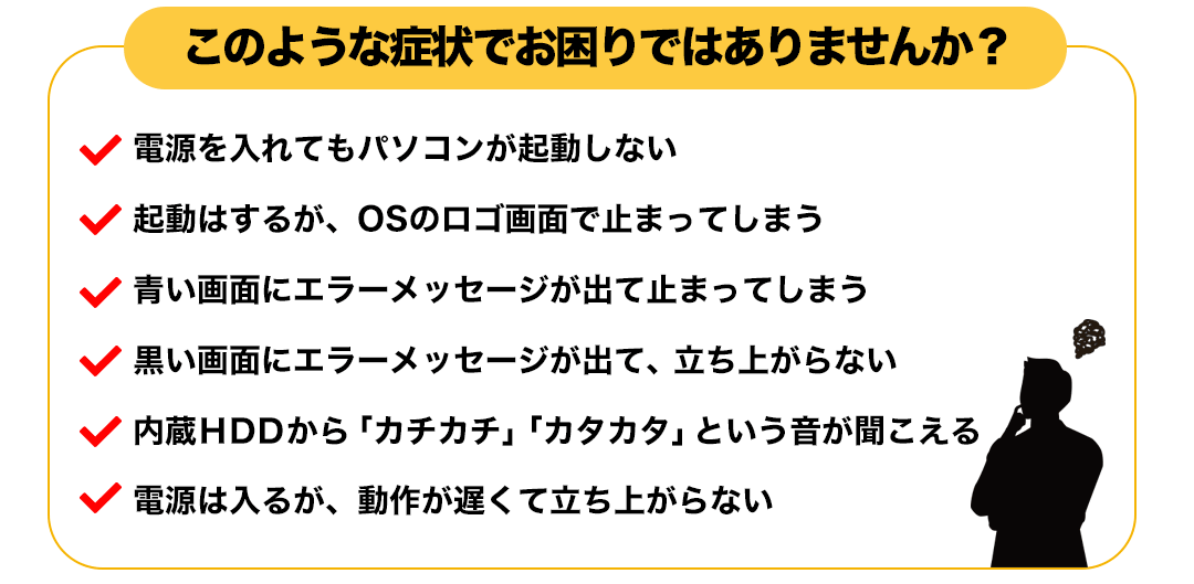 パソコンを強制終了したところ、起動がしなくなってしまったお客様の声はこちら