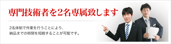 | 専門技術者 | 技術者1名 | 技術者1名専属 | 技術者1名専属 | 技術者2名専属 |