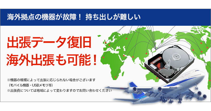 | 出張費無料でお客様の所へ伺います。 サーバ・NAS・外付けHDD・PCの出張データ復旧であれば、出張費無料でお客様の所へ伺います。 |