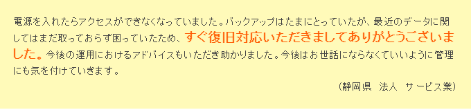 ファイルサーバーとして使用していた機器の中にお客様の情報を入れたデータベースを保存して運用を行っていました。