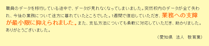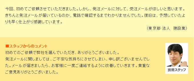 これで今まで大事にお取引させて頂いているお客様を失わずに済みます。また何かありましたら、ぜひともお願いします。